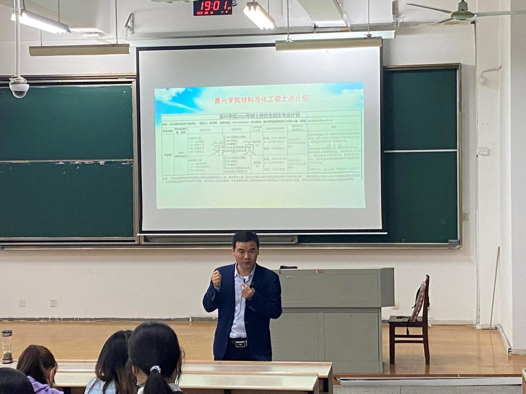 曹雪波教授向同学们详细介绍了学院材料与化工硕士点招生相关情况,结合当前就业形势和自身经历,深入分析考研对个人成长和未来就业的重要意义,并结合学院政策和服务工作为同学们的备考提出了针对性建议。他指出,考研是人生又一次重要转折点,同学们应抓住机遇,努力坚持并力争取得好的成绩;要坚定一战成硕的初心,全力拼搏,以饱满的精神状态去迎接人生大考。