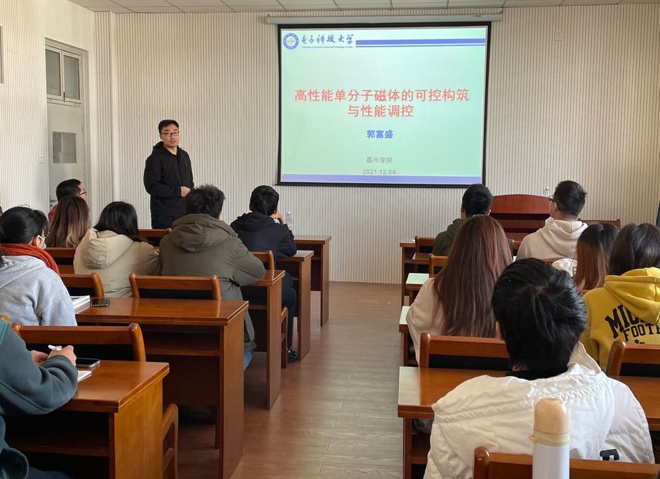 12月4日上午,应91自拍 邀请,电子科技大学郭富盛教授一行来访,并作题为“高性能单分子磁体的可控构筑与性能调控”的学术报告。学院严政老师主持讲座,全院师生40余人到场聆听。