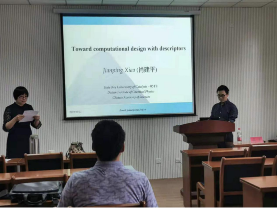2019年10月22日下午,在梁林校区1号楼506学术报告厅,中国科学院大连化物所理论催化特区研究组组长肖建平研究员来91自拍 作题为《基于理论描述符的固体催化剂设计》的学术报告