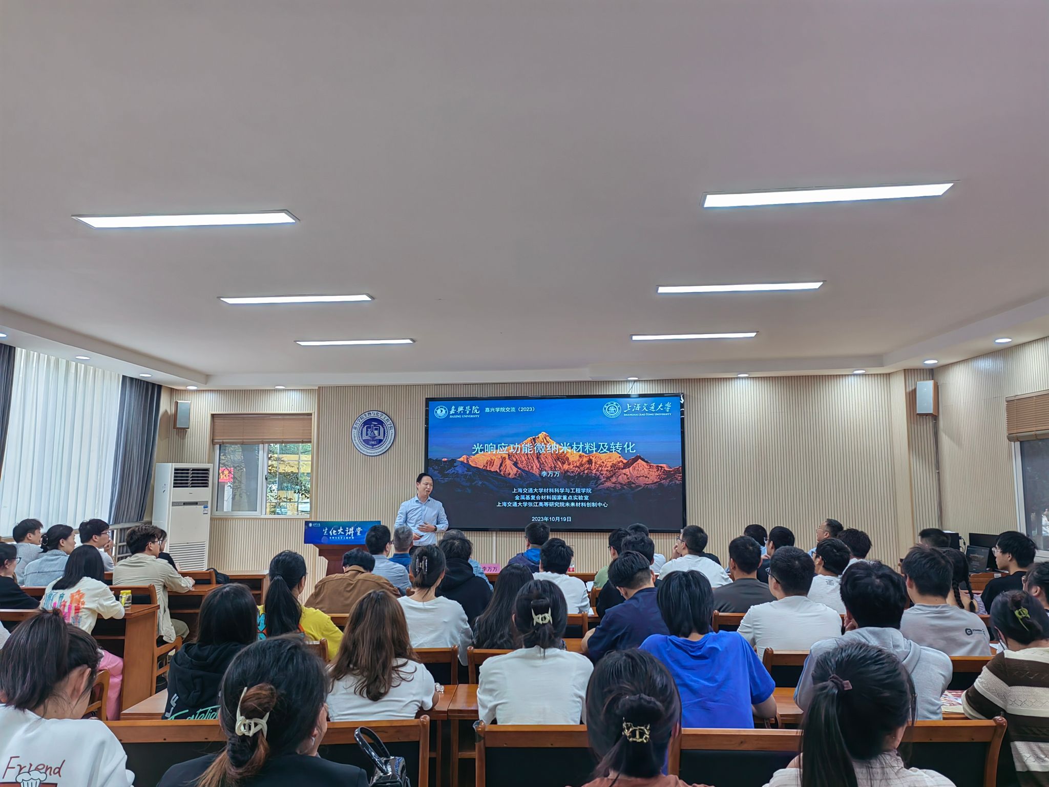 举办“生化大讲堂”第二十四期学术交流会,本次大讲堂特邀请上海交通大学材料科学与工程学院首席研究员、博士生导师李万万作题为“光响应功能微纳米诊疗材料及转化”的学术报告。会议由学院郭隆华教授主持,全院及中澳先进材料与制造研究院师生70余人到场聆听。