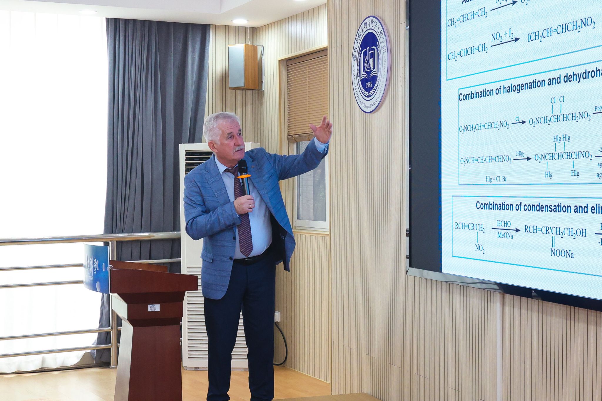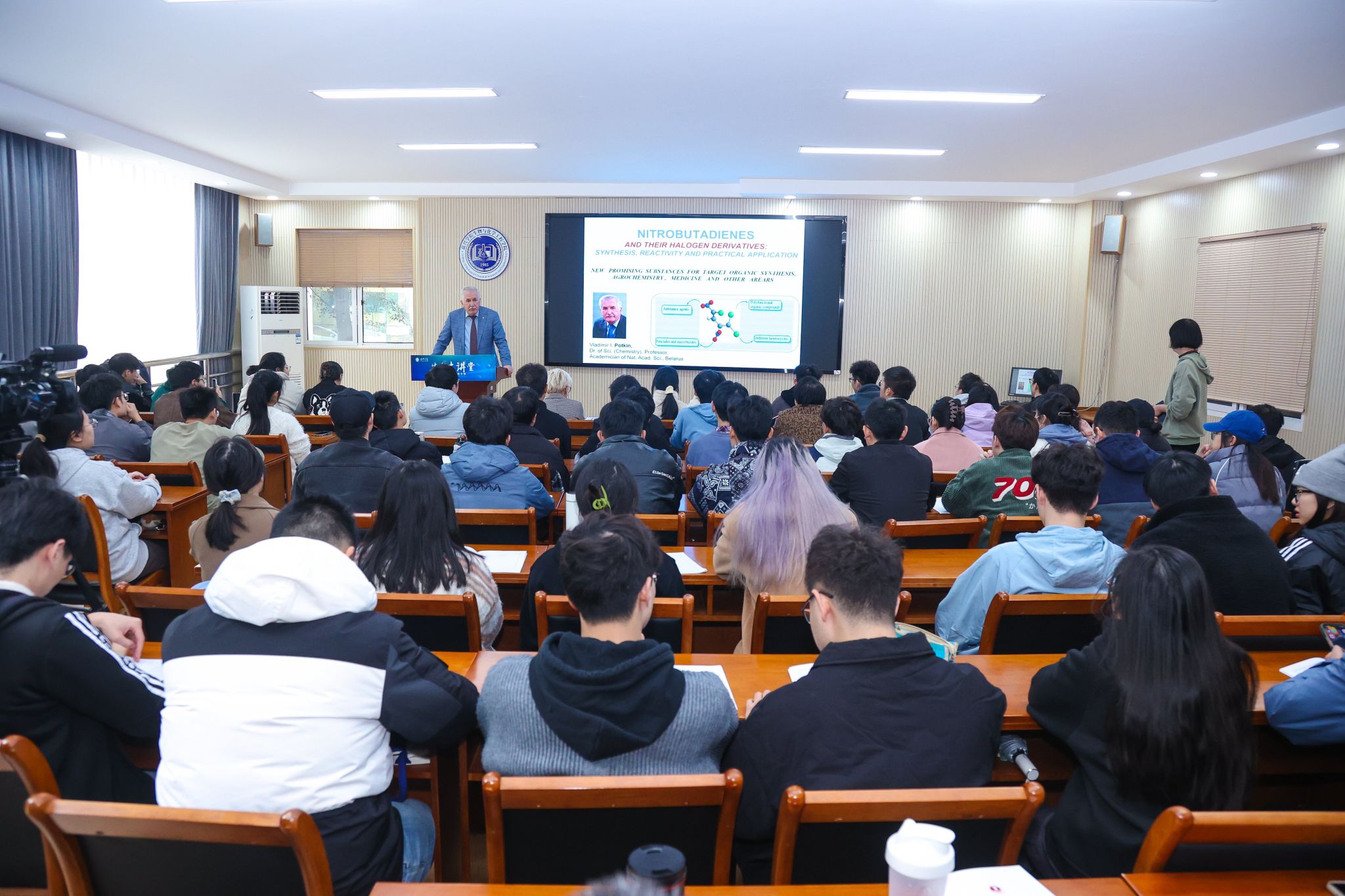 1116日下午,91自拍 举办“生化大讲堂”第二十六期学术交流会,本次大讲堂特邀请白俄罗斯国家科学院院士波特金Vladimir Potkin)作题为“硝基丁二烯及其卤素衍生物:合成、反应性以及实际应用——靶向有机合成、农化、医药等领域的新兴物质”的学术报告。会议由邱观音生教授主持,全院及中澳先进材料与制造研究院师生80余人到场聆听。