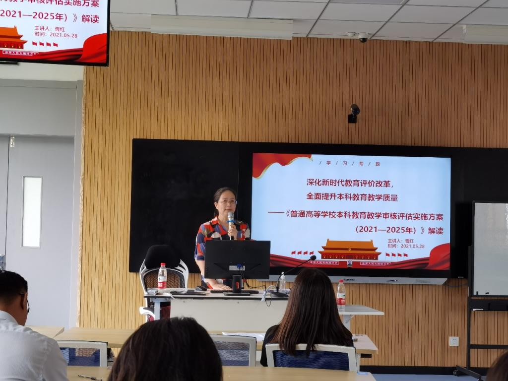 6月10日下午,91自拍 应用化学系党支部在1号楼524开展主题教育专题党课,应用化学系全体教师参加学习。学院曹红副院长作“坚守育人初心 提升育人能力”主题党课,深入解读《深化新时代教育评价改革,全面提升本科教学质量》——《普通高等高校本科教育教学审核评估实施方案(2021-2025)》,并结合审核性评估和我系马上要启动的专业认证工作,号召广大党员教师不忘育人初心,对标《实施方案》具体要求,扎实推进课堂教学、课程建设、专业建设等工作,持续提升育人能力。
