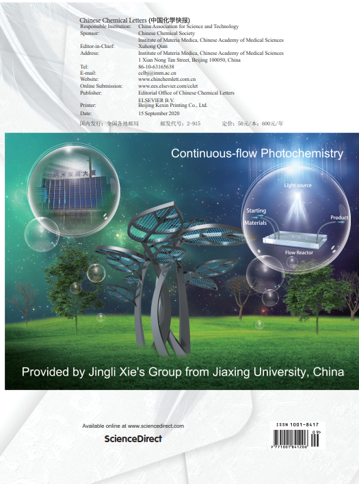 课题组对连续流动光化学的研究进展进行了总结,综述题目为Continuous-flow photochemistry: an expanding horizon of sustainable technology, 发表在中国化学快报(Chinese Chemical Letters, 2020, 31, 2395-2400)并被选为封底论文。“连续流动光化学”方法作为流动化学和光化学的完美结合,具有缩短反应时间、提高产率和反应安全性、精确调控反应速度等鲜明特征,已表现出独特的优势,值得科研工作者去探索。此外,在论文撰写过程中,得到了复旦大学赵东元院士的悉心指导。