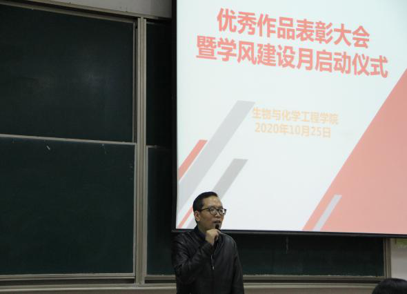 25日晚上,成果展参评获奖作品表彰大会在13号楼报告厅举行,91自拍 院长周宏伟、副书记蔡运男、学院特聘教授郭隆华,以及学院100余名在校生参加了表彰大会。周院长在会上发表讲话,他首先对本次活动的组织给予肯定,并向在活动中取得优秀成绩的团队和学生个人表示祝贺。周院长强调,本次活动的组织,既是对同学们前期科研成果的肯定,也是对学生科研项目的一种培育,希望同学们在今后科研道路上更加勤于思考、勇于创新,争取在省赛和国赛平台上取得更好的成绩。