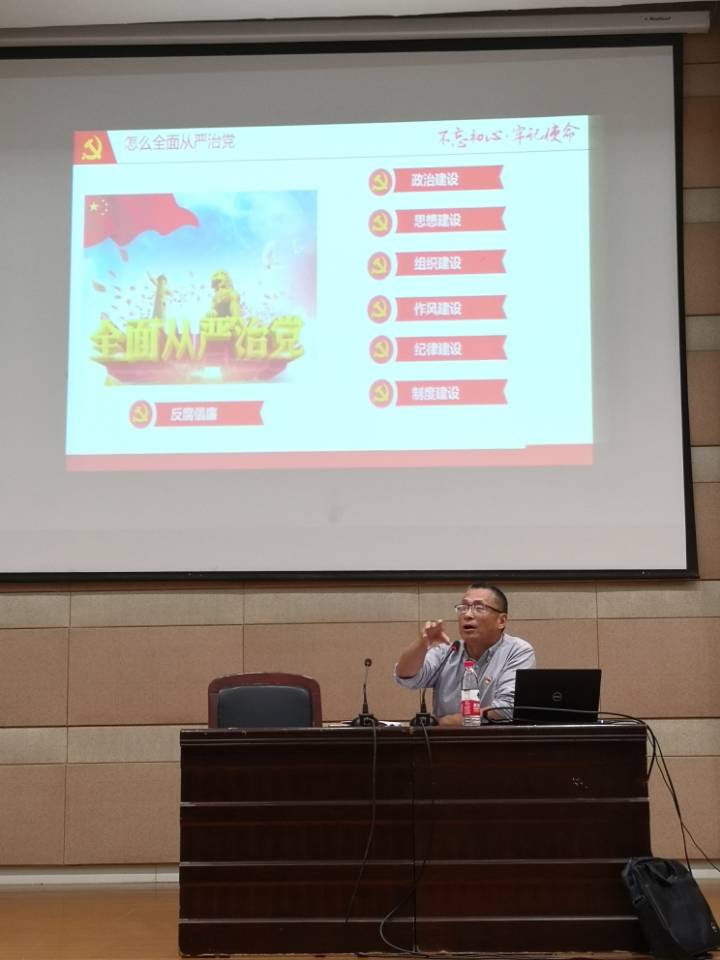 10月24日下午,生化学院党委书记方苏华在梁林校区TCL报告厅,以《全面从严治党》为题,为学院全体教工党员讲了一堂生动的党课。