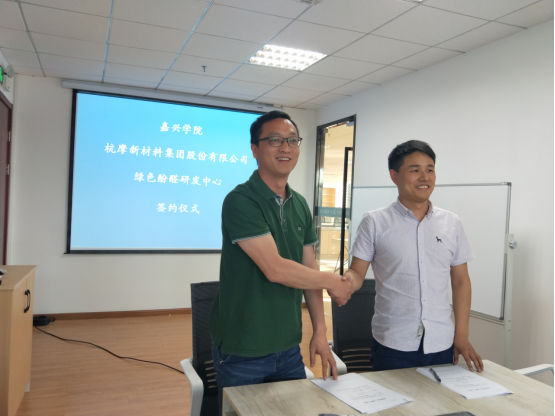 2019年5月29日,杭摩新材料集团股份有限公司与嘉兴学院91自拍 李加友团队成立了“绿色酚醛研发中心”,并签订了“绿色酚醛树脂新材料系列产品的开发”的技术开发合同,合同金额100万元。