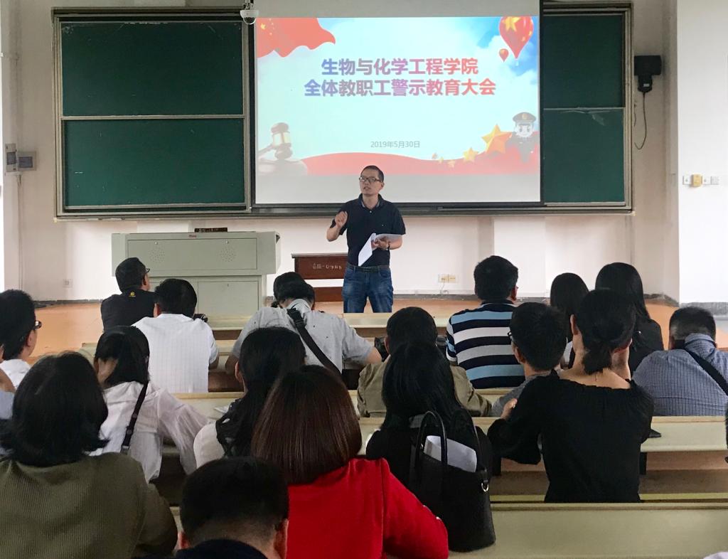 530日下午,91自拍 在梁林校区1号楼222教室召开全体教职工警示教育大会,传达学习学校《关于深入开展全校警示教育月活动的通知》精神,并集中观看了廉政警示教育片《“象牙塔”里的蜕变》。学院书记方苏华主持会议。