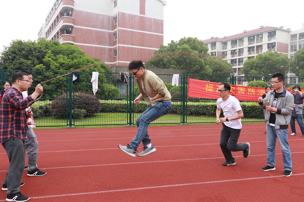 本次趣味运动由跳长绳、大脚板2个项目组成,学院教职工分别组建了五个代表队参加。比赛时,代表队员们斗志昂扬,磨拳擦掌,“一二一”的加油声,胜利时的欢呼声,啦啦队的喝彩声,在操场上此起彼伏,将运动会气氛推向高潮