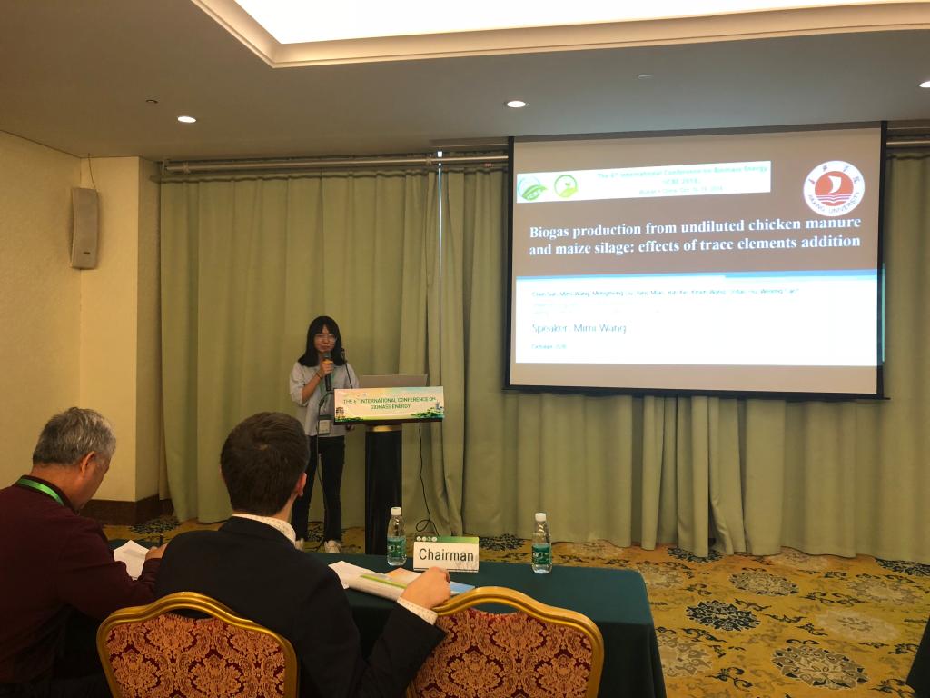 91自拍 环境工程专业三年级学生汪密密在指导教师孙辰博士和曹卫星博士的带领下,于10月17日下午在第六届生物质能源国际会议“生物质燃气”分会场做了题为“Biogas production from undiluted chicken manure and maize silage: effects of trace elements addition”的大会口头报告,并现场回答专家提问。其精彩的报告和回答赢得与会专家的认同和热烈掌声。会后,孙辰、曹卫星和汪密密一行三人与各国学者进行了深入的学术交流,探讨并宣传了嘉兴学院近年来在生物质厌氧消化领域的研究进展,取得了国内外同行的认可,汪密密同学与各国的青年学者结交了广泛的学术友谊。