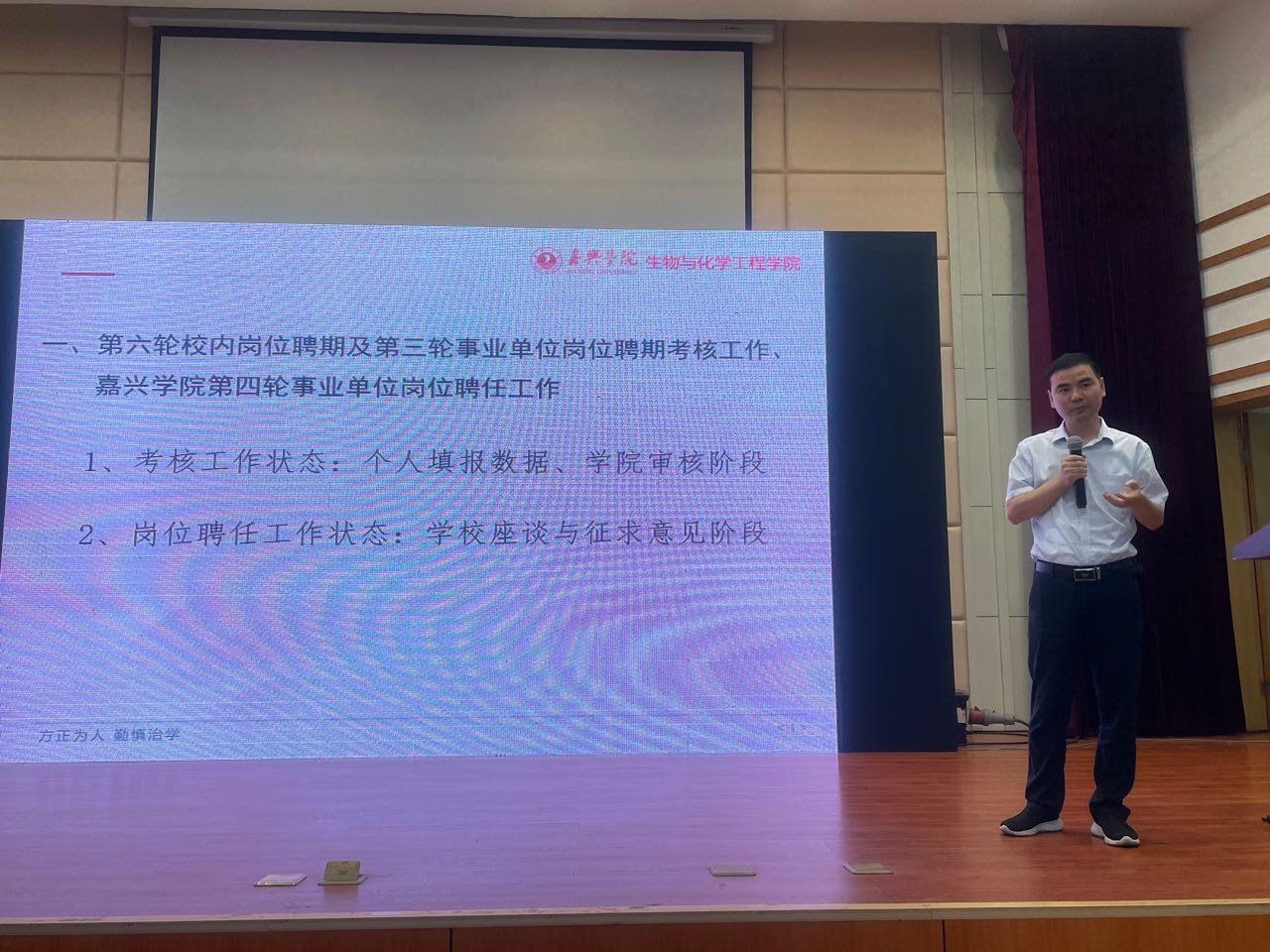 学院党政领导班子成员分别结合各自主管工作发言。院长曹雪波对学院近期的聘期考核、楼宇搬迁、研究生招生、安全稳定等相关事项进行部署,对实验室安全工作进行了强调。他指出,实验室安全工作是重中之重,生化工程实验中心要尽力改善实验室环境,加强实验室安全管理,为师生们提供更好的实验教学环境。