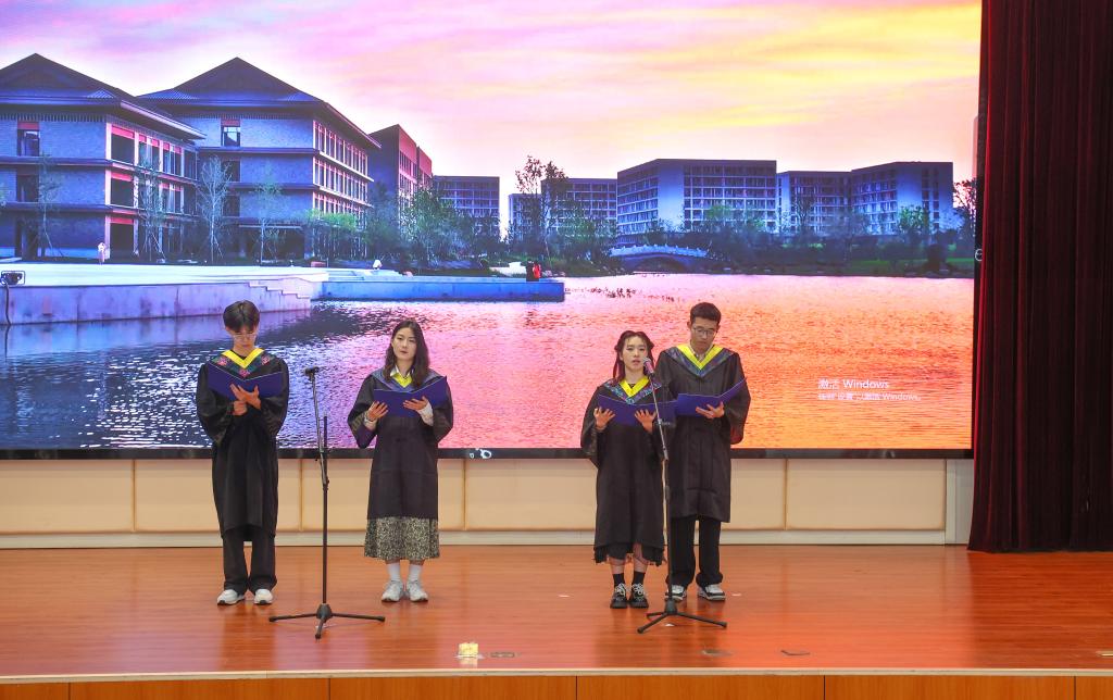 随后,四位毕业生代表进行诗歌朗诵。他们怀着对大学的深深眷恋和对未来生活的无限憧憬,以诗传情,书写清澈的热爱,愿学院荣华长青。欢送会最后在赠送毕业生纪念品中逐步落下帷幕。