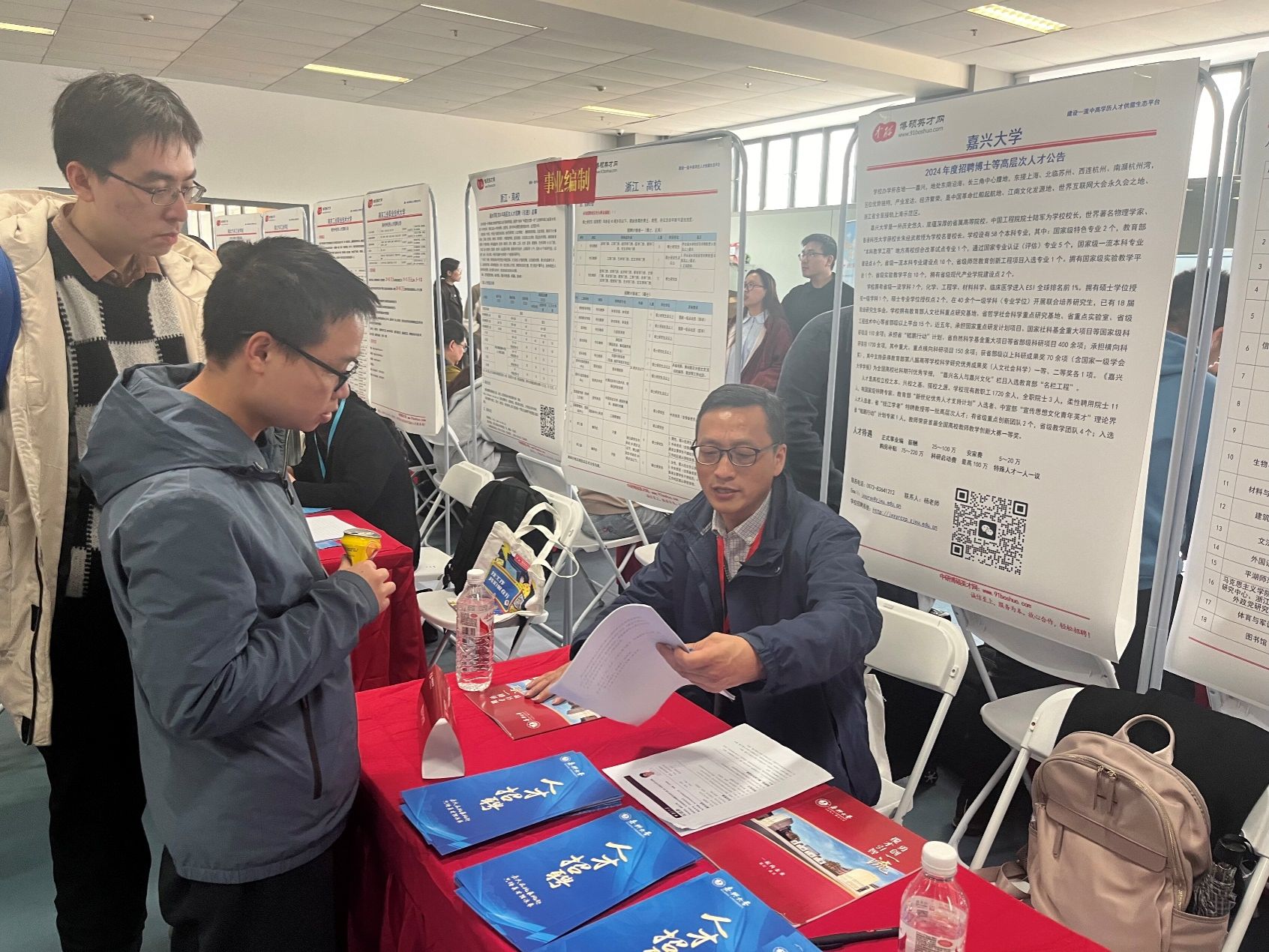 当日下午,李加友老师还参加了在南京大学仙林校区方肇周体育馆举办的“2024年春季全国博士、博士后高级人才巡回签约洽谈会”,详细介绍了我校岗位需求、人才层次设定和福利待遇等。