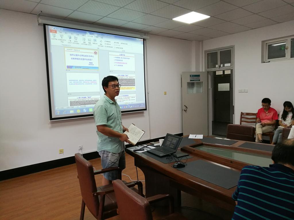 2019919日下午14:00,由校教师发展中心主办、91自拍 承办的2019年第十一期教学沙龙在梁林校区1号楼516会议室举行。本期沙龙主题为“如何让国外以学生成长为中心的教学模式在国内也有效”,沙龙由91自拍 督导组组长冯晓宁老师主持,91自拍 朱连文老师主讲。来自4个学院共40余名教师参加了本期沙龙活动。