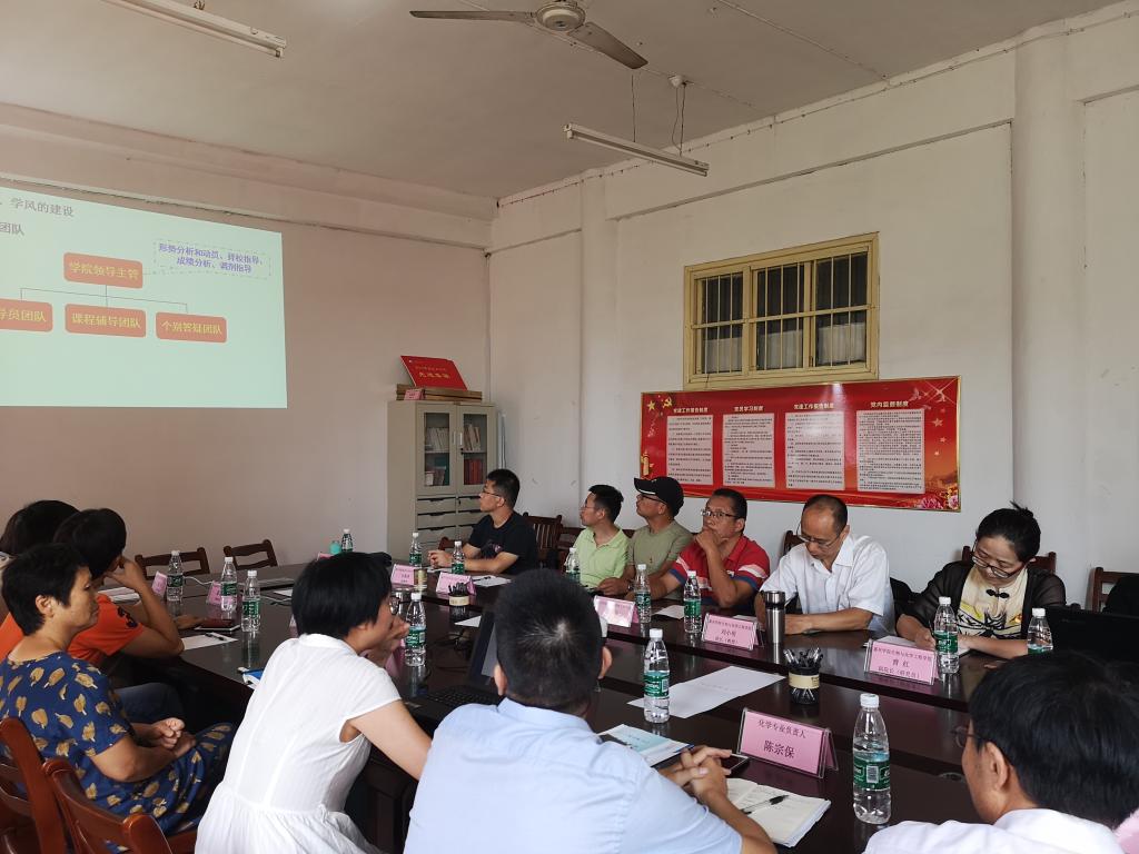 化学与环境科学学院院长叶青教授以及各教研室主任、专业负责人就学院的办学特色、学科竞赛、科研立项、学生考研等方面办学成就进行了介绍,随后双方就该院开展审核评估工作推进情况、评估的经验做法作了交流,重点对本科教学审核评估材料收集、整理及自评报告的撰写等方面进行了梳理,双方还就审核评估的重点内容,进行了深入交谈。座谈后,更加明确了91自拍 各部门在评估过程中所需承担的职责。
