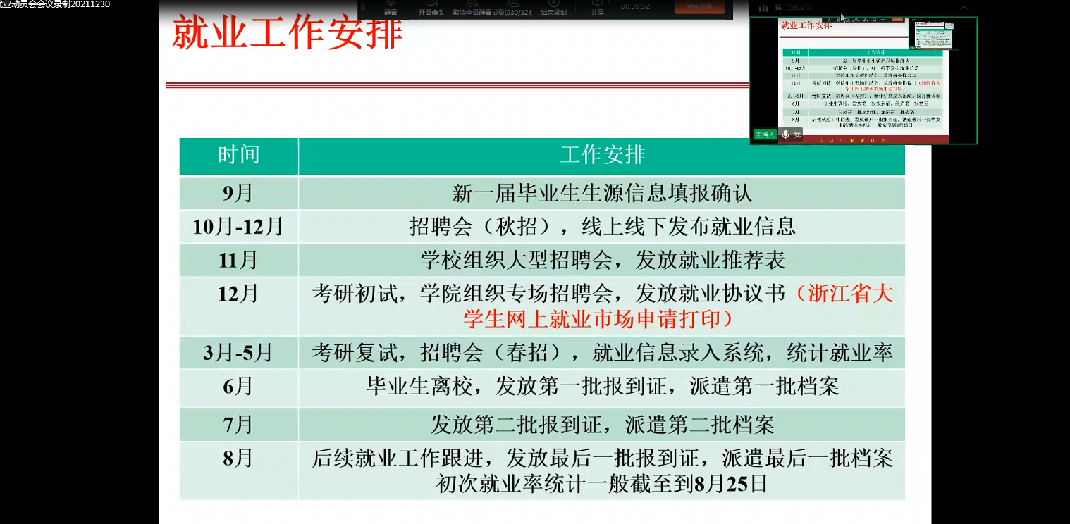 2021年12月30日中午12:30,91自拍 通过线上会议形式召开2022届毕业生就业动员会,91自拍 党委副书记蔡运男老师、学工办辅导员潘佳豪老师以及2022届全体毕业生参加了本次会议。