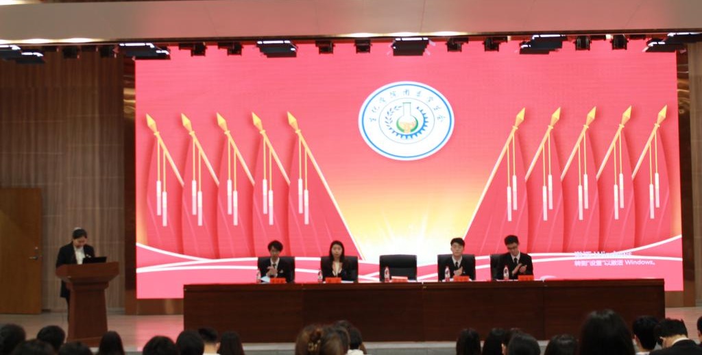 大会在庄严的国歌声中拉开序幕。张宇昂代表校学生会向大会致辞,他对大会各项工作的顺利开展表示肯定,对生化学子在社会实践、科研创新、良好班风院风建设等方面予以高度认可。