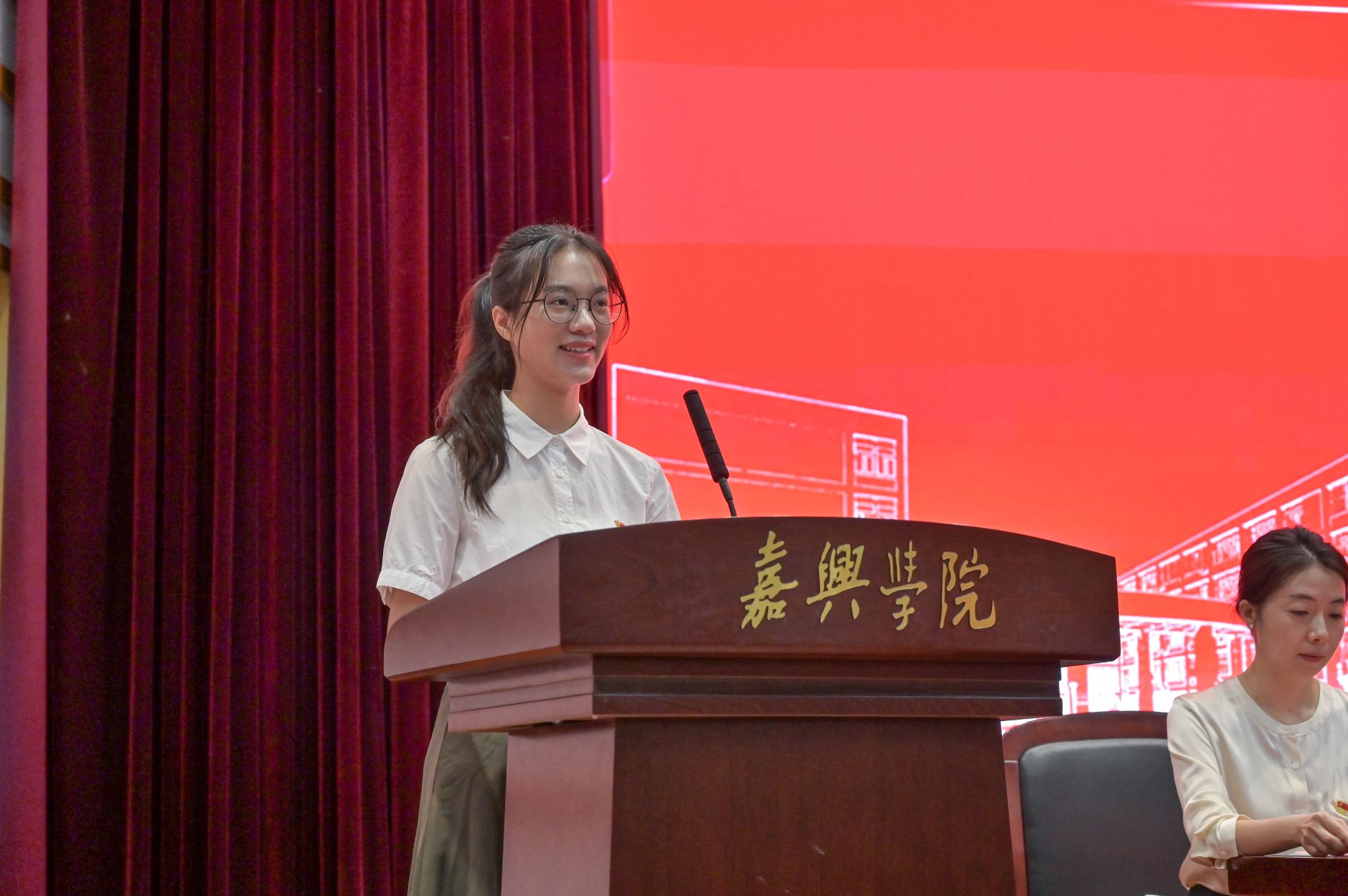 材料与化工专业23级研究生薛磊扬、应化国际231班董鑫雨、生物211班钱梦佳分别代表研究生、新生、老生进行发言。他们表示将从红船精神中汲取信仰的力量、奋进的力量、创新的力量,努力争做自信自强、勤勉笃行、追求卓越的强国先锋、“四明”青年。