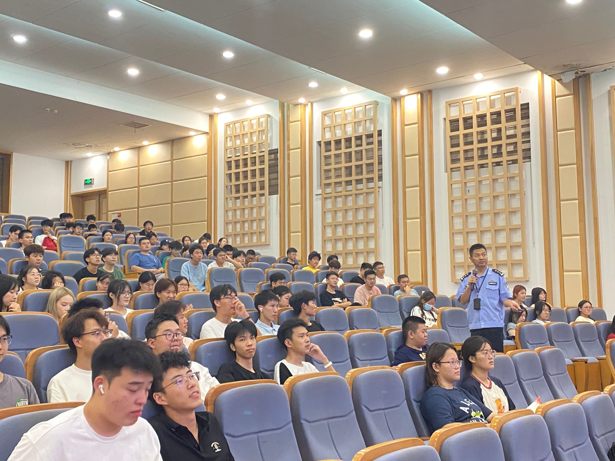 张秋江警官结合近期我校和网络上发生的安全事故案例以及自身多年工作经验,从人身财产安全、校园安全、网络安全、交通安全等方面展开讲解号召广大新生同学要牢固树立安全意识,提高警惕,做好安全防范措施,保障生命和财产安全,并和同学们开展互动环节,“一问一答”中让同学们通过自我思考,自我剖析,论述哪些行为会引发不良后果,以及针对这些情况如何采取正确的措施。