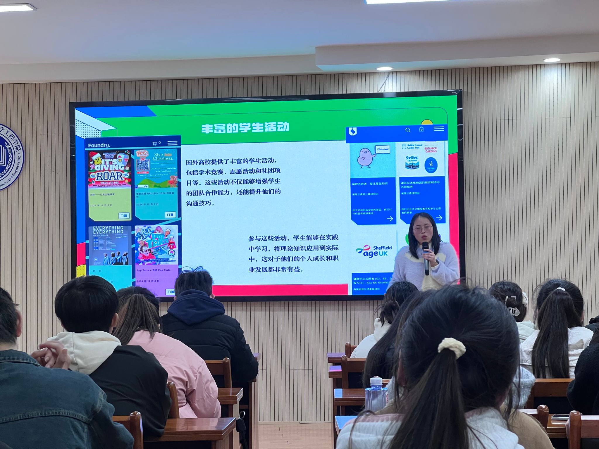 沈安琪通过自身的亲身经历,从浓厚的专业学术氛围、高质量的教育体系、录取后的灵活性和留学课余生活等方面详细介绍了英国留学的具体情况,并提供了留学选校的建议,包括申请的时间、程序、手续、材料等,同时,她重点介绍了雅思考试的内容和技巧。她强调,同学们要明确出国访学的目的,出国交流的初衷以及期望达到的目标,并从语言能力提高、体验不同文化、提升自我认知、个人成长发展和学术提升等方面分享了经验。