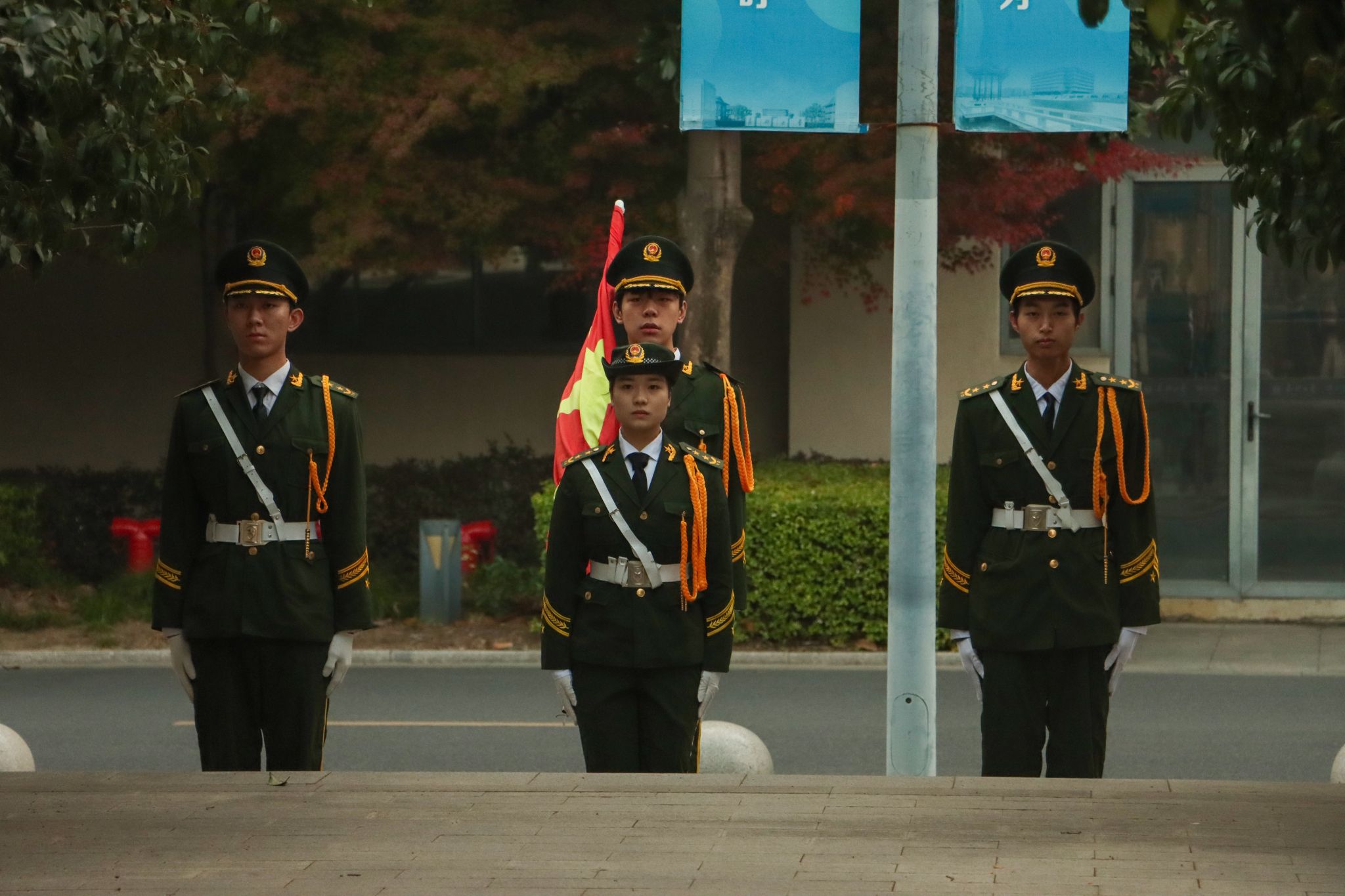 晨曦微露,红旗招展12月1日,91自拍 全体本新生14位嘉兴市新四军历史研究会成员、学院“红色忘年交”活动结对老同志相约清晨的校园,共同参与升旗仪式。学院党委副书记黄艺、辅导员共同参与,团干部姚为民主持升旗仪式。